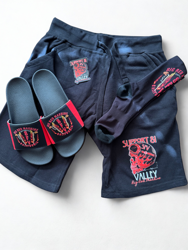 Support 81 Valley Skull Premium Fleece Shorts Red